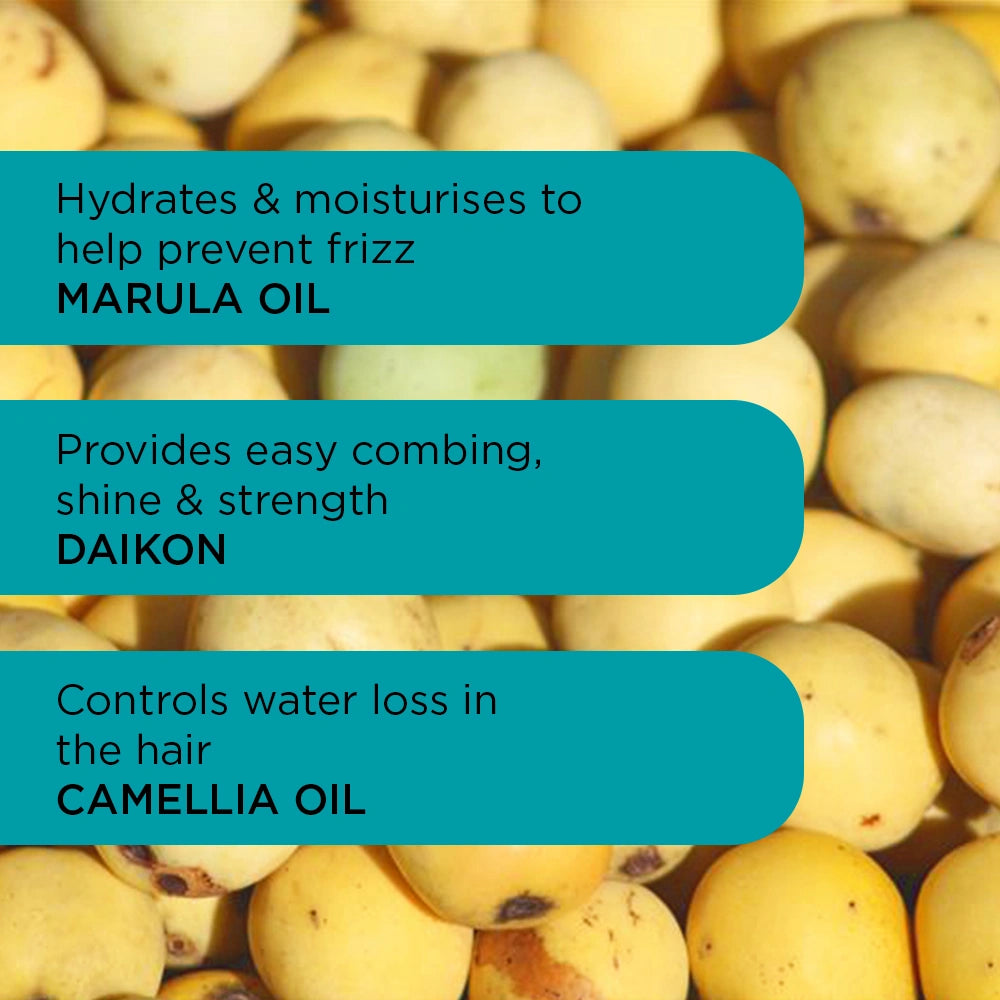 - Ingredientes Naturales: Contiene una mezcla de extractos activos de salvado de trigo y daikon y aceites hidratantes de marula y coco que optimizan la suavidad y la condición del cabello.