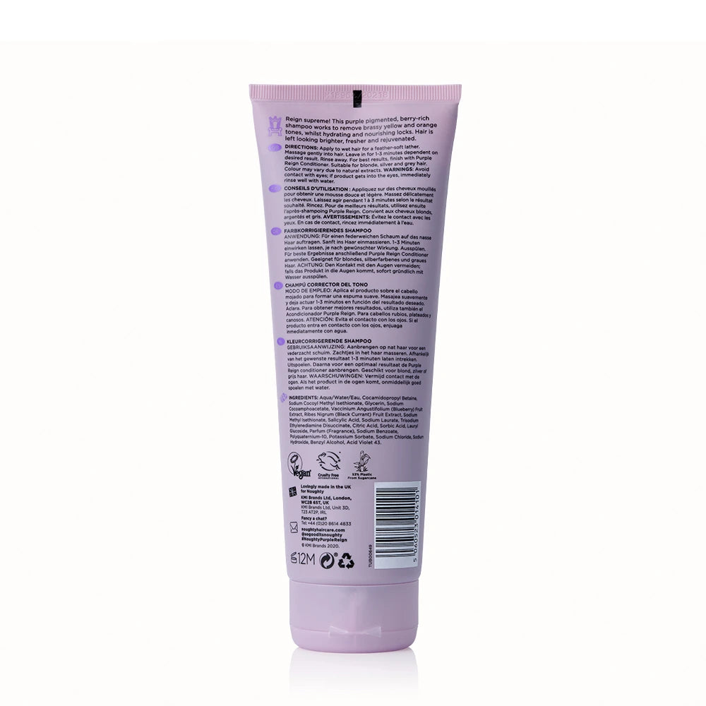 Derrota el tono amarillento con el Champú Purple Reign que corrige el tono. Neutraliza los tonos no deseados para rubios más brillantes, plateados más vibrantes y grises más frescos. Natural, sin sulfatos, sin siliconas, sin parabenos. Vegano y libre de crueldad.