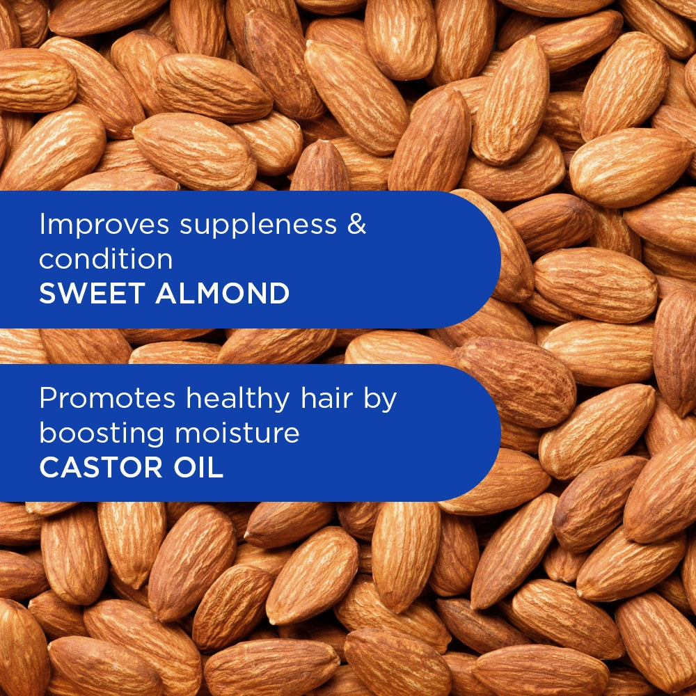 - Natuurlijke ingrediënten: Een verwenmengsel van kokos-, ricinus- en zoete amandeloliën en sheaboter.
